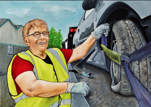 jobs that were traditionally male dominated. The series of paintings subvert gender stereotypes and challenge our prejudices and expectations. Mechanics, metal workers, bus drivers and many other jobs all have their time in the spotlight. The women that she met were proud of their work and were big personalities that were so thankful to be seen.